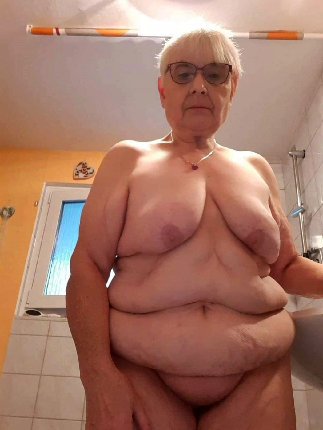 a very very venerable granny shows us her naked body