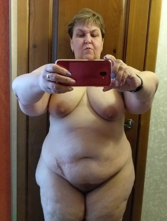 Photoshooting with naked granny selfshot